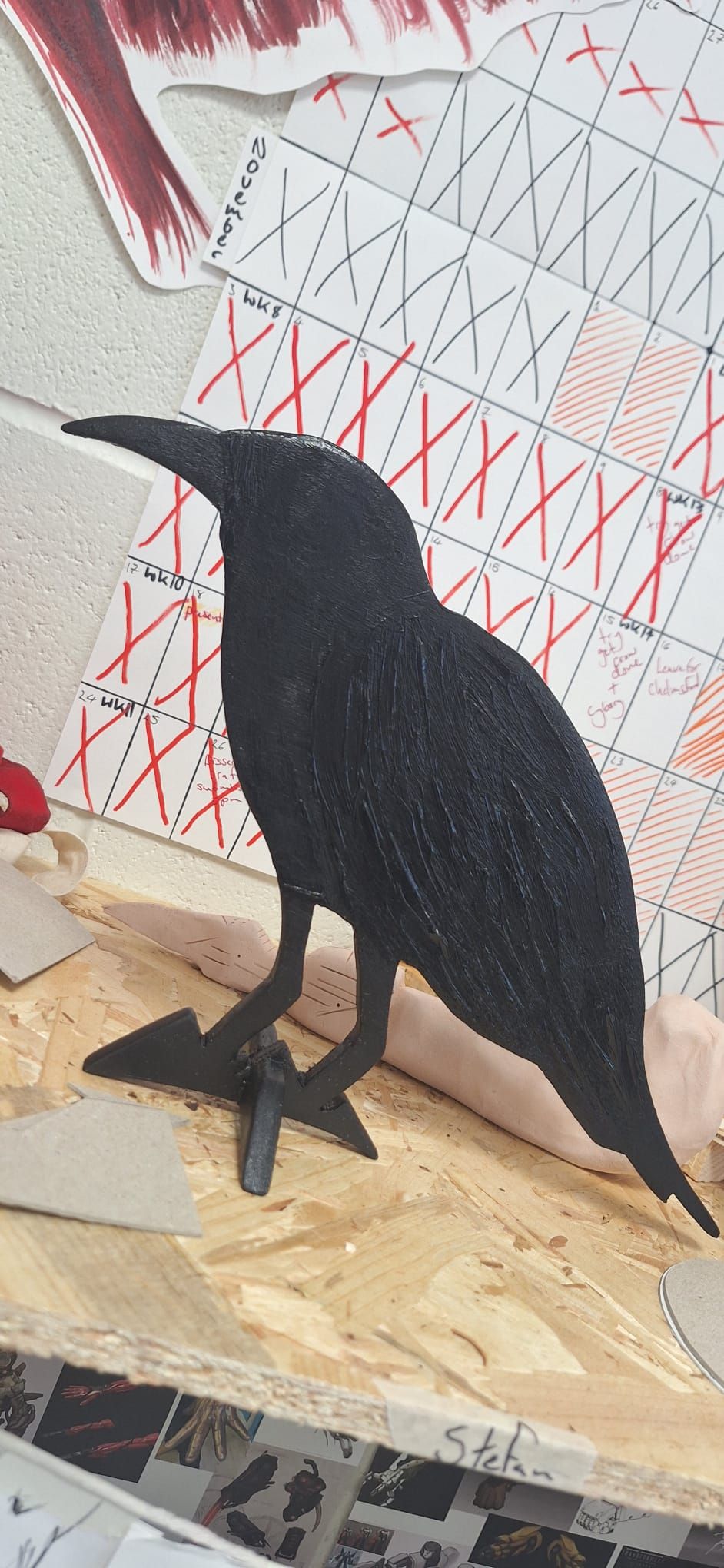 Stefan - YC Art department (metal work) Raven - Below are a couple of images Stefan has sent me from our collaboration - the second picture is the final product of his hard work for me. This will be used for my first image either on the table with the skull and book or as a light silhouette for the background.