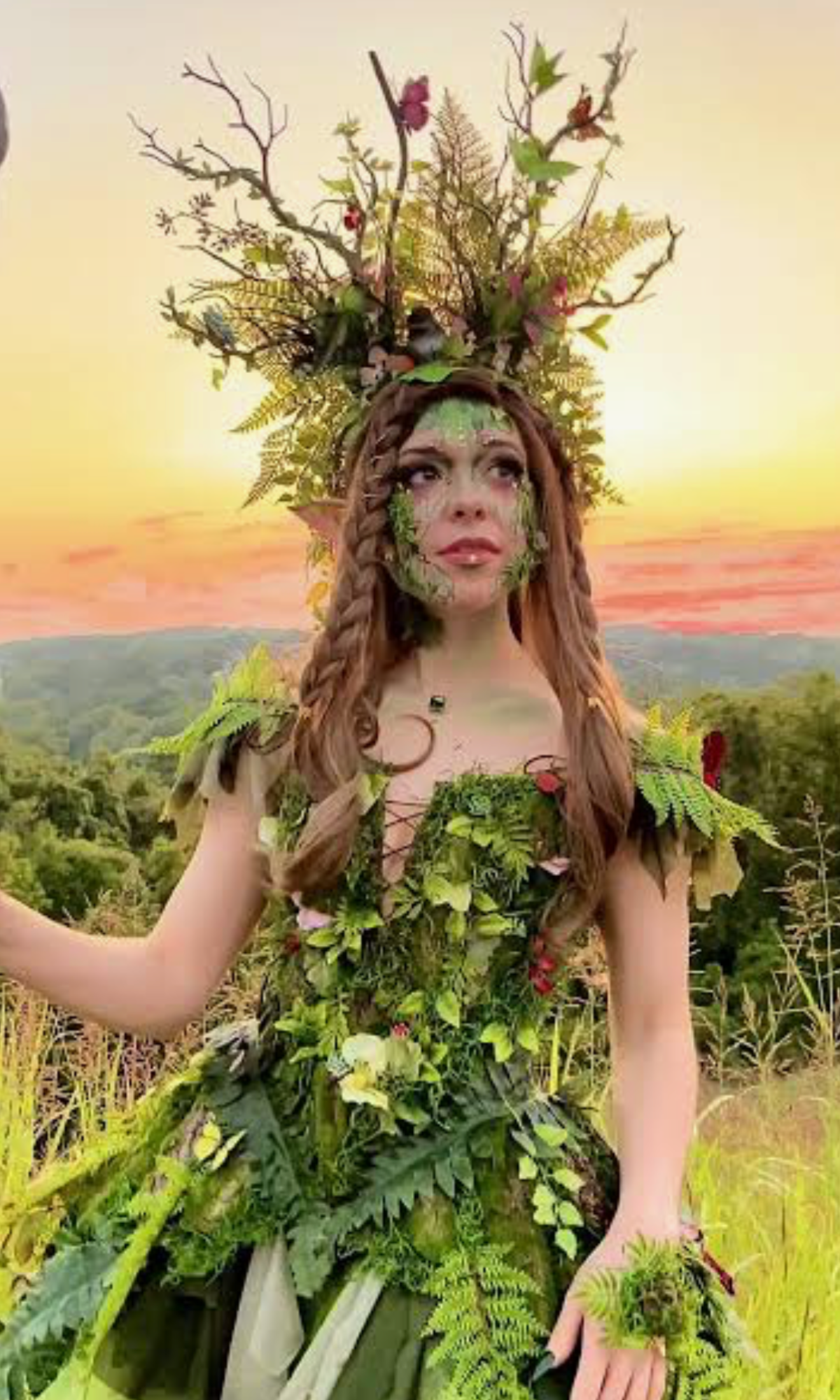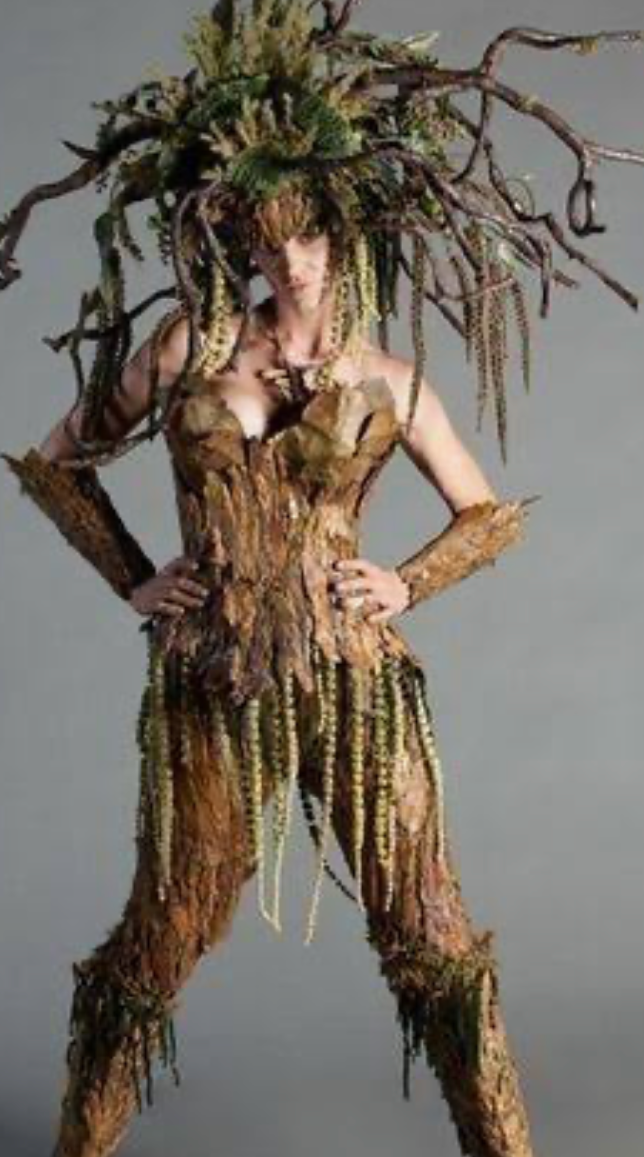 The image will have a natural themed wig with flowers, twigs, leaves and moss to create a tree/forest like effect almost whimsical. The costume designer will make the skirt for the model from recycled materials which I will provide.