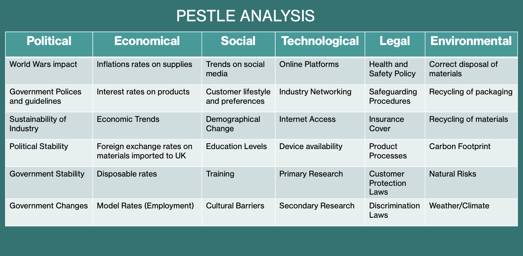 Attached is my PESTLE Analysis for my Plan & Proposal