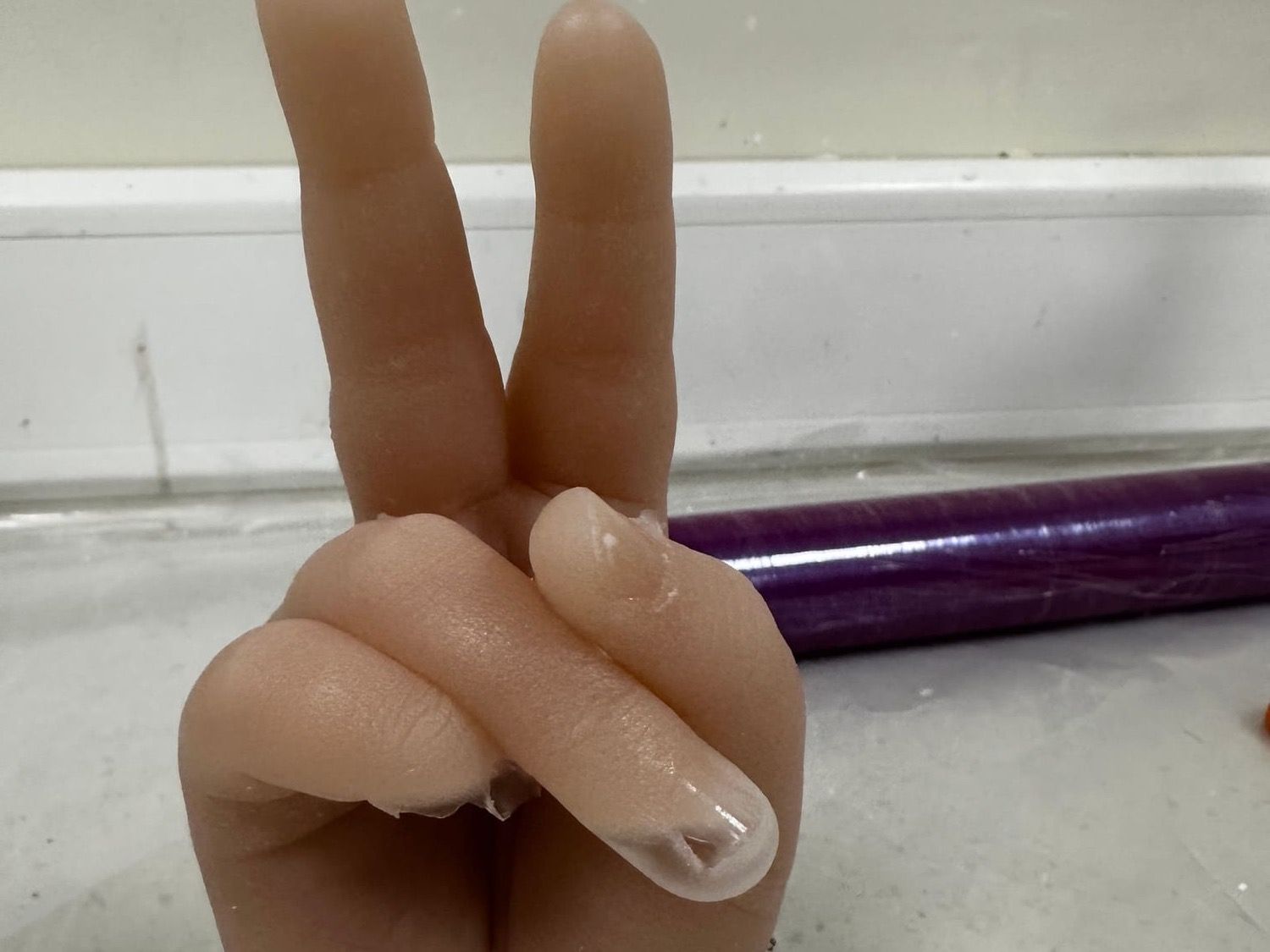 This week we continued with Business and Ethic FormsWe was shown how to make a bald cap from scratch and I made a prosthetic hand too.Using Algenate instead of silicone casting it was a good practice run on how to cast a body part and experiment with silicon and deadner to get the ratios right and also colour pigment. Final product shown in picture and I must say apart from the two finger tips it was a job well done (this is why we practice to finesse the final product) I must say when I bought it home my kids (7 & 9 yrs) absolutely loved it but didn't use it as the peace sign - they did have a little giggle which made me laugh.